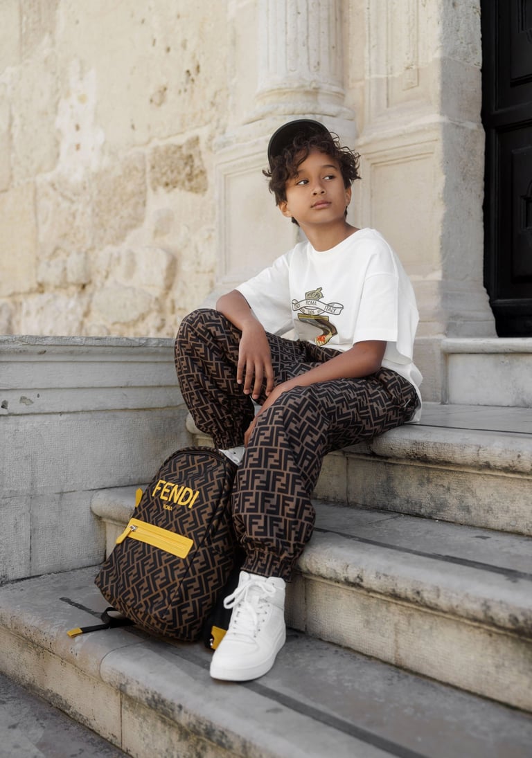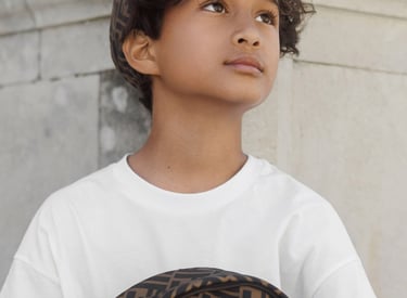 A refined children’s editorial shot in Ortigia, Sicily. Clean silhouettes, timeless fashion and calm gestures meet historic architecture, creating a visual story about elegance, curiosity and childhood in motion.