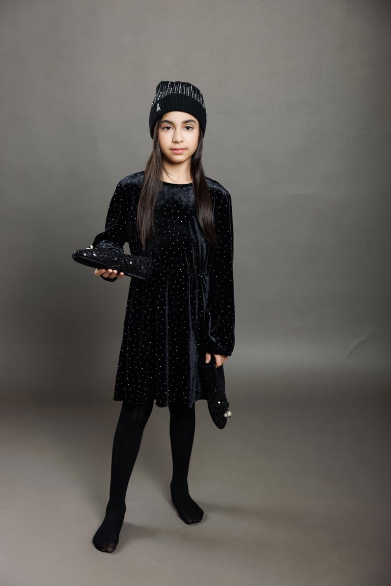 The photos were created by kids fashion photographer Andrii Shnaider in Sicily, Italy, who specializes in editorial photography for young models and children's fashion brands. Using soft studio lighting, neutral backgrounds, and elegant compositions, the series creates timeless portraits suitable for fashion portfolios and editorial publications.